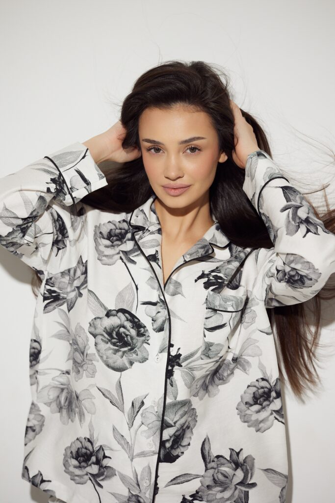 piżama z delikatnym kwiatowym motywem